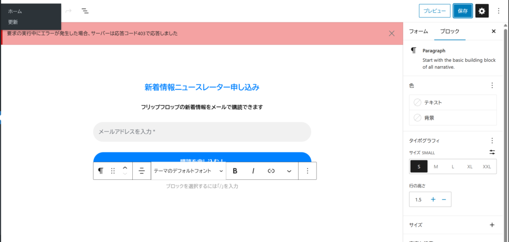 なんですが、403エラーが出て保存ができません。